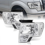Ford F150 2009-2014 Factory Style Headlights Chrome Housing Clear Len Clear Reflector (Halogen Models Only)