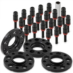 Universal 4 Piece Wheel Spacers + Extended Lug Nut Bolts Black - PCD: 5x120 | Thread Pitch: M12x1.5 | Bore: 72.56mm | Thickness: 15mm & 20mm | Lug Nuts: 40mm & 45mm