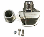 B/D Thermostat Housing was developed to offer B and D Series engine owners a few more options with their cooling system setups. The CNC machined billet housing is a direct replacement for the oem unit and mounts in the same factory position, with the rad outlet following the original and slightly upward outlet angle. The number one feature of this design is the threaded water outlet port on the body, which allows use of the standard 1.25" rad hose fitting . This unique threaded port design eliminates the need to weld bungs to the old and dirty factory cast aluminum pieces. The rad hose fitting thread size is 16OR (1-5/16-12 SAE) and is properly sealed in an o-ring port to ensure leak-free operation. The housing also has two additional ports on it, one for the fan switch and one 1/8 NPT accessory port for gauges etc. Note that we do include a plug for the 1/8 NPT port, just in case the port is not used. We even machined and threaded the M6 hole for the important ground ring found on the engine harness. Installation is very simple, the housing is located right beside the intake manifold and held in place with only two bolts. You'll notice that we have two different top hole locations, these allow the housing to fit For Honda all 1988-2001B-Series engines and all 1988-2000 D-Series engines (Except D16Z6). The B/D Thermostat Housing is not just a functional piece, it will also add a very nice touch to any engine bay.
