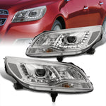 Chevrolet Malibu 2013-2015 Halo LED DRL Bar Projector Headlights Chrome Housing Clear Len Clear Reflector (Halogen Models Only)