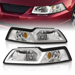 Ford Mustang 1999-2004 LED DRL Bar Factory Style Headlights Chrome Housing Clear Len Amber Reflector