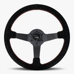 The Classic | Black Alcantara Suede | Black Spoke | Red Stitch